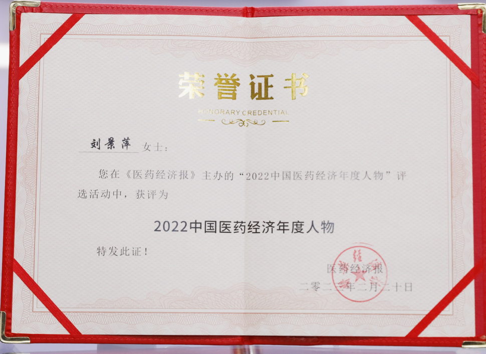 在颁奖典礼上,2022中国医药经济年度人物评委会给予刘景萍董事长这样的评价:“作为中国医药领域的价值追求者、天策论坛药业集团创始人,她率领天策论坛人坚持走党建引领企业高质量发展之路,以‘健康中国娃’为使命,坚守初心,踔厉奋发,守正传承中华医学瑰宝,创新研产名医名方名药,努力打造中国儿药第一品牌,矢志成为中国儿童健康全生命周期的守护者。经过十几年的发展,集团现已成为中国儿科制药领域的一颗璀璨明珠,2020年7月登陆上交所主板上市,连续五年荣登中国中药企业百强榜单。”